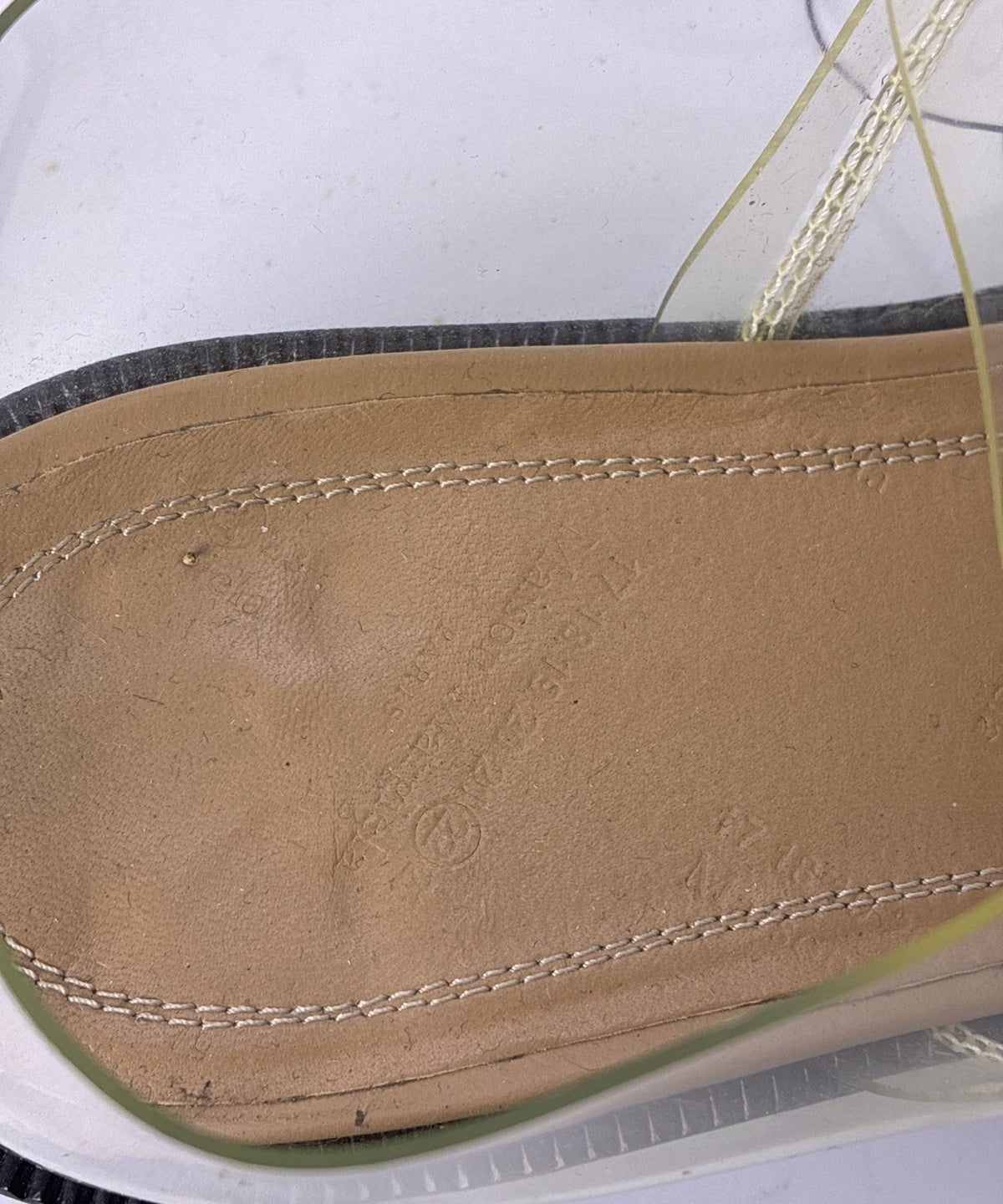 [แบรนด์] Maison Margiela [เพศ] ผู้หญิง [สภาพ] A [สี] ไม่ระบุ [ขนาด] 38 (ประมาณ 24.5ซม.) [ขนาดจากการวัด(ซม)] ความสูง:6ซม ส้น:2ซม พื้นส้นรองเท้า (ความยาว):26ซม พื้นส้นรองเท้า (ความกว้าง):10ซม [วัสดุ] พีวีซี [ประเทศที่ผลิต] อิตาลี [รายละเอียดอื่น ๆ] ฤดูกาล: ฤดูใบไม้ผลิ/ฤดูร้อน |