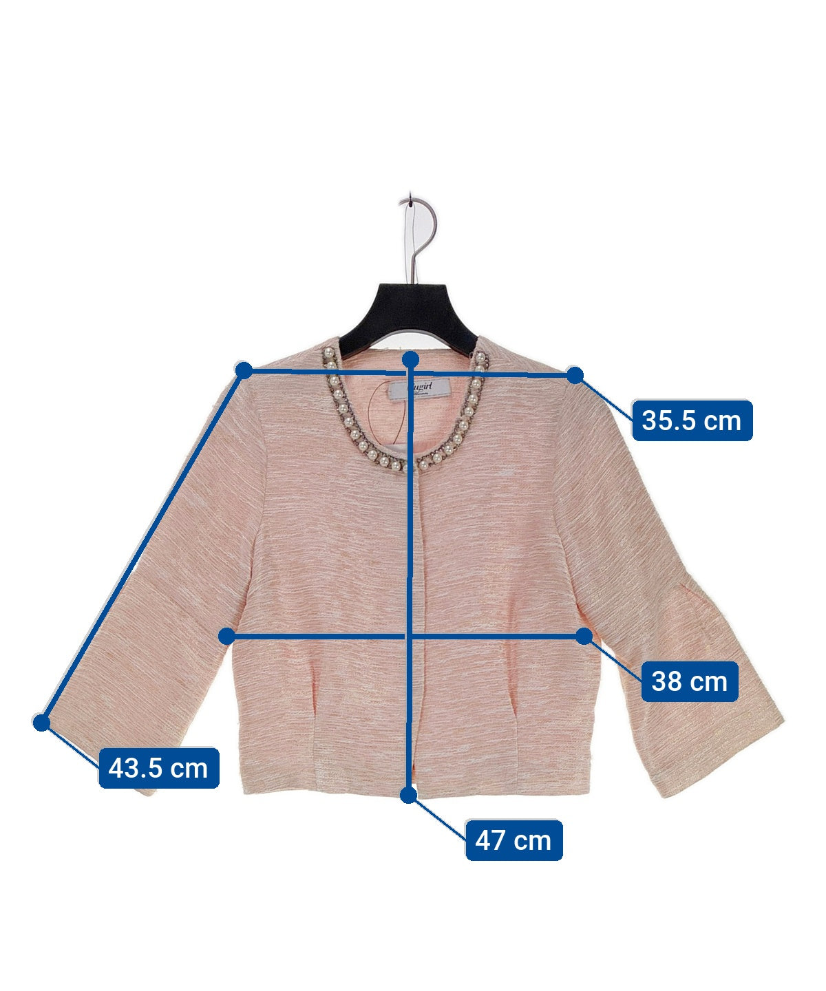 [แบรนด์] BLUGIRL [เพศ] ผู้หญิง [สภาพ] B [สี] สีชมพูอมม่วง (ผสม) [ขนาด] (โอ้ที่รัก) [ขนาดจากการวัด(ซม)] ความกว้าง: 38ซม ความกว้างไหล่: 35.5ซม ความยาวแขนเสื้อ: 43.5ซม ความยาว: 47ซม ความกว้าง:43ซม ความกว้างไหล่:36ซม ความยาวแขนเสื้อ:40.5ซม ความยาว:46ซม [วัสดุ] (ผ้าด้านนอก, ผ้าด้านใน)โพลีเอสเตอร์100% [ประเทศที่ผลิต] จีน [รายละเอียดอื่น ๆ] ฤดูกาล: ฤดูใบไม้ผลิ/ฤดูร้อน กระเป๋า: ไม่ ซีทรู/สามารถมองทะลุได้: ไม่ ความหนาของผ้า: ความหนาทั่วไป ซับใน: ใช่ ความยืดหยุ่น: ไม่ รู้สึกได้ถึงความมันเงา: ไม่ ประเภทตัวยึด: กระดุมสแน็ป ลวดลาย: ลวดลาย |