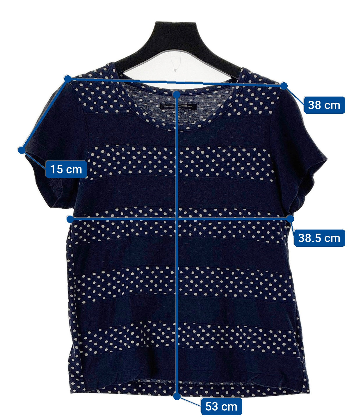 [แบรนด์] Y's [เพศ] ผู้หญิง [สภาพ] B [สี] สีน้ำเงินกรมท่า x สีขาว (จุด) [ขนาด] 2 (เทียบเท่ากับ S) [ขนาดจากการวัด(ซม)] ความกว้าง: 38.5ซม ความกว้างไหล่: 38ซม ความยาวแขนเสื้อ: 15ซม ความยาว: 53ซม ความกว้าง:46ซม ความกว้างไหล่:33.5ซม ความยาวแขนเสื้อ:14ซม ความยาว:51ซม [วัสดุ] ผ้าฝ้าย100% [ประเทศที่ผลิต] ญี่ปุ่น [รายละเอียดอื่น ๆ] ฤดูกาล: ฤดูใบไม้ผลิ/ฤดูร้อน กระเป๋า: ไม่ ซีทรู/สามารถมองทะลุได้: ไม่ ความหนาของผ้า: ความหนาทั่วไป ซับใน: ไม่ ความยืดหยุ่น: ใช่ รู้สึกได้ถึงความมันเงา: ไม่ ประเภทตัวยึด: ไม่มี |