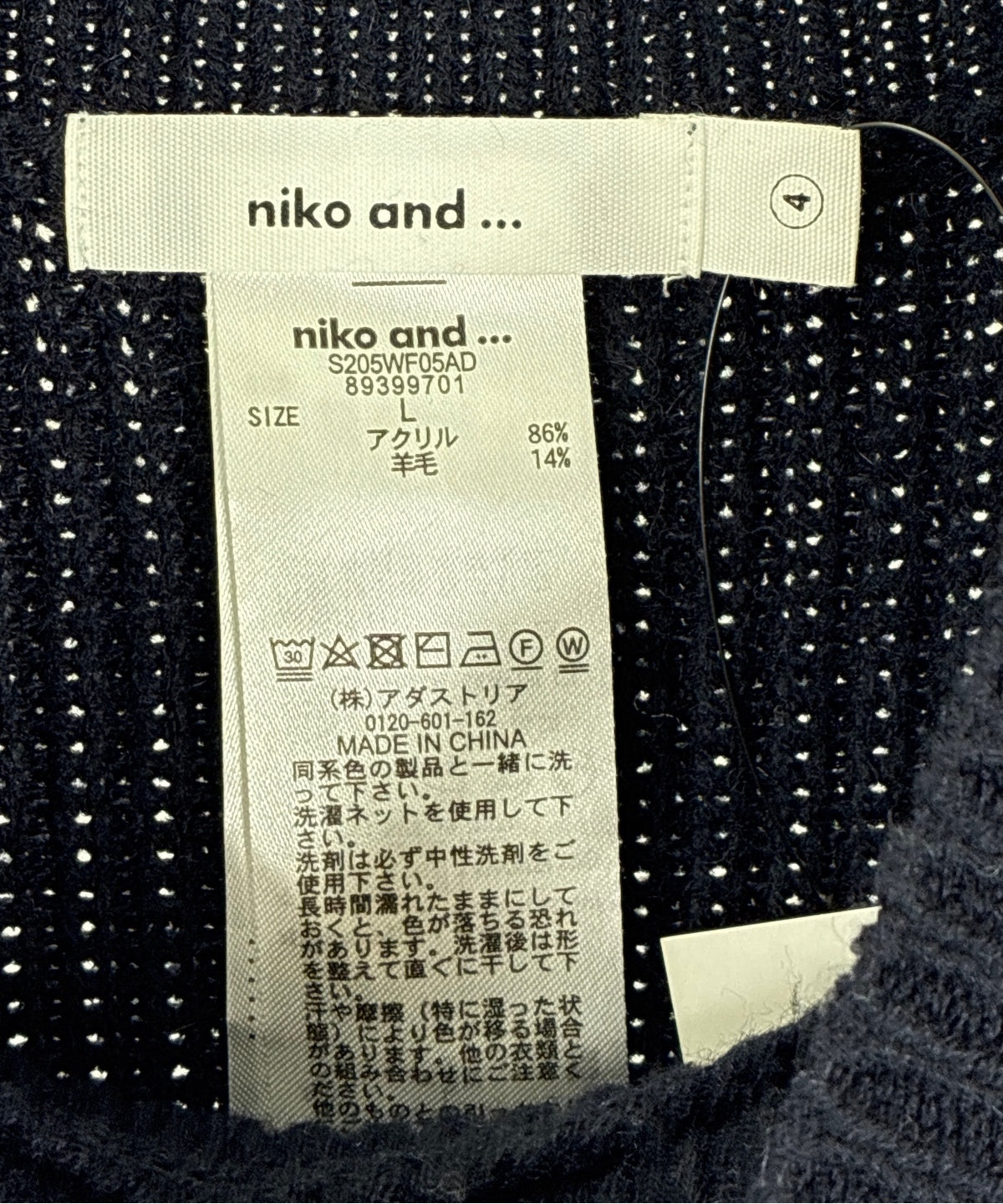 [แบรนด์] niko and... [เพศ] ผู้หญิง [สภาพ] B [สี] สีน้ำเงินเข้ม [ขนาด] L [ขนาดจากการวัด(ซม)] ความกว้าง: 50ซม ความกว้างไหล่: 60ซม ความยาวแขนเสื้อ: 0.5ซม ความยาว: 49ซม [วัสดุ] อะคริลิก, ขนสัตว์ [ประเทศที่ผลิต] จีน [รายละเอียดอื่น ๆ] ฤดูกาล: ฤดูใบไม้ร่วง/ฤดูหนาว |