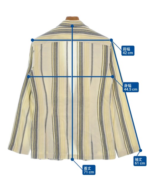 [ยี่ห้อ] LARDINI [เพศ]ของผู้ชาย [สภาพ]ระดับ: B [สี] White x Navy x Yellow (ส่วนเทป, ซับใน) [ขนาด] XS [ขนาดจากการวัด(ซม)] ความกว้าง:44.5cm ความกว้างไหล่:42cm ความยาวแขนเสื้อ:61cm ความยาว:71cm [Accessories] ดอกไม้ติดสูท [ วัสดุ] กัญชา58%, ผ้าฝ้าย 42% [ประเทศที่ผลิต]อิตาลี [รายละเอียดอื่น ๆ] ฤดู:ฤดูใบไม้ผลิ/ฤดูร้อน กระเป๋า:ใช่ กระเป๋าด้านนอก:2 โปร่ง:ไม่ ความหนาของผ้า:ความหนาทั่วไป ซับใน:ไม่ ความยืดหยุ่น: 100% ความมันวาว:ไม่ ประเภทของตัวยึด:กระดุม แบบ:ลวดลาย |