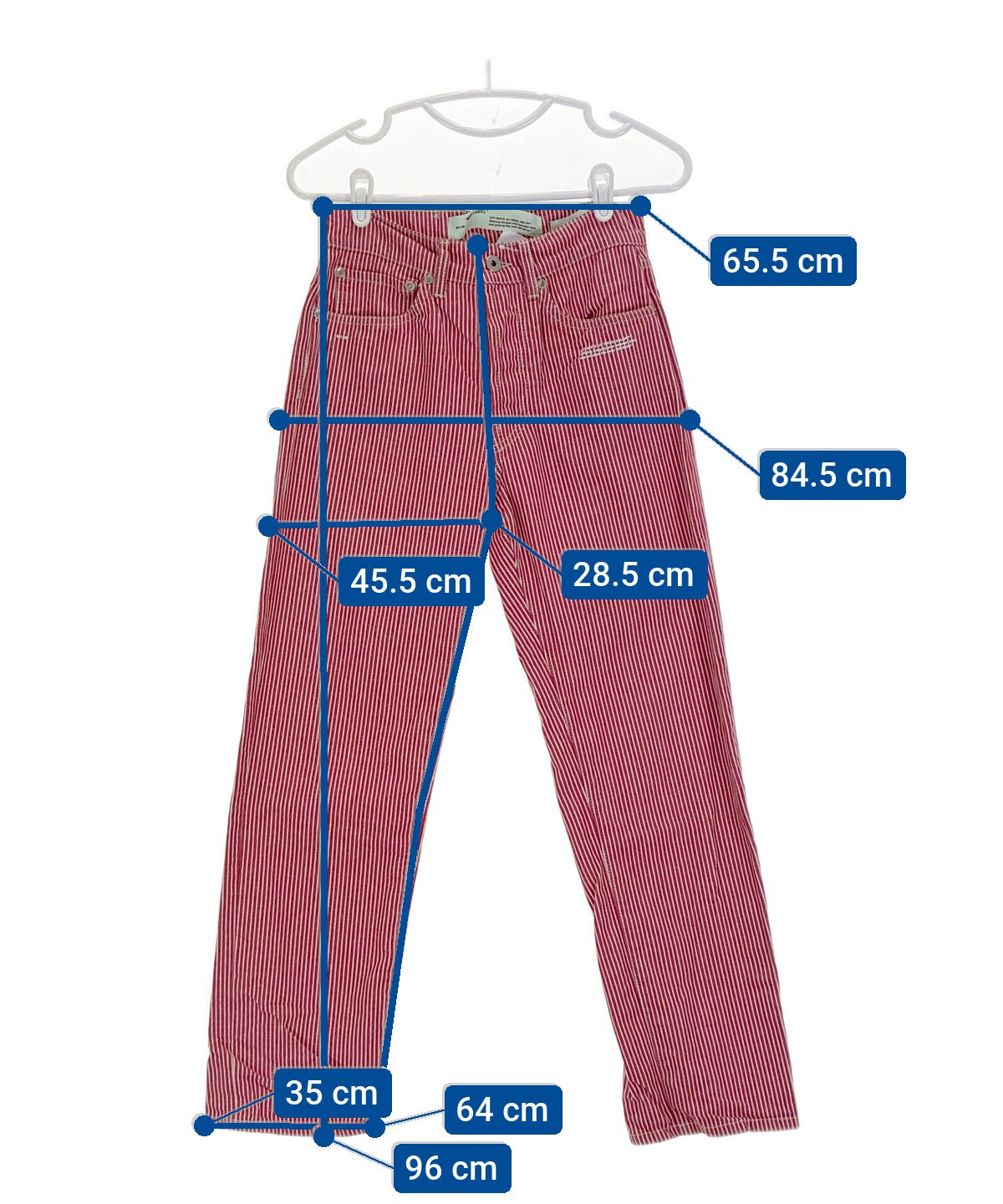 [แบรนด์] OFF WHITE [เพศ] ผู้หญิง [สภาพ] B [ขนาดจากการวัด(ซม)] เอว: 65.5ซม สะโพก: 84.5ซม ความยาวขาใน: 64ซม ระดับเอว: 28.5ซม ความกว้างวาตาริ: 45.5ซม รอบชายเสื้อ: 35ซม |