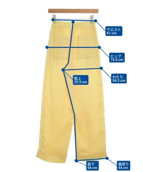 [ยี่ห้อ] ASTRAET [เพศ]ผู้หญิง [สภาพ] ระดับ : เหมือนใหม่ [สี] สีเหลือง [ขนาด] 00 (ประมาณ XS) [ขนาดจากการวัด(ซม)] เอว:61cm รอบชายเสื้อ:44cm สะโพก:74.5cm ความกว้าง : 54.5ซม. ระดับเอว:35.5cm ความยาวขาใน:66cm [วัสดุ](ผ้าด้านนอก, ผ้าด้านใน)โพลีเอสเตอร์100% [ประเทศที่ผลิต]จีน [หมายเหตุ] ขนาดสามารถปรับเปลี่ยนตามมุมได้ [รายละเอียดอื่น ๆ] ฤดู:ฤดูใบไม้ผลิ/ฤดูร้อน กระเป๋า:ใช่ กระเป๋าด้านนอก:4 โปร่ง:ไม่ ความหนาของผ้า:ความหนาทั่วไป ซับใน:ใช่ ความยืดหยุ่น: 100% ความมันวาว:ไม่ ประเภทของตัวยึด:ไม่มี แบบ:เรียบ ความยาวกางเกง:ยาว |