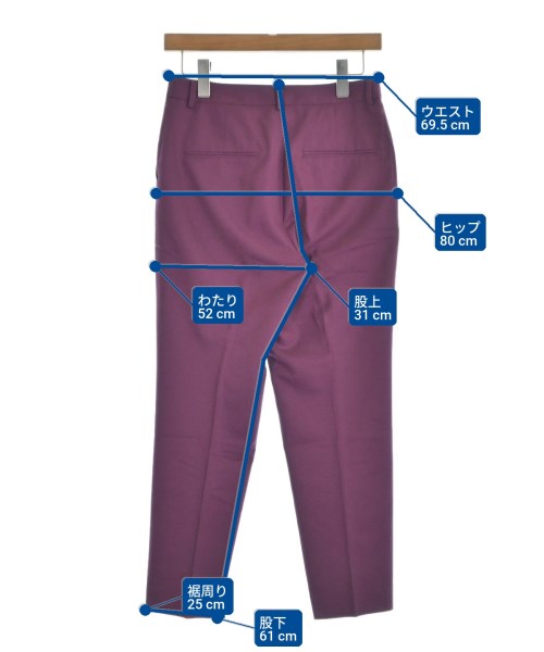 [ยี่ห้อ] TOMORROWLAND collection [เพศ]ผู้หญิง [สภาพ]ระดับ: ก [สี] สีม่วง [ไซส์] 34 (XS) [ขนาดจากการวัด(ซม)] เอว:69.5cm รอบชายเสื้อ:25cm สะโพก:80cm ความกว้าง : 52ซม. ระดับเอว:31cm ความยาวขาใน:61cm [วัสดุ]94% wool, 6% (ซับใน) cupra [ประเทศที่ผลิต]ญี่ปุ่น [รายละเอียดอื่น ๆ] ฤดู:ฤดูใบไม้ผลิ/ฤดูร้อน กระเป๋า:ไม่ โปร่ง:ไม่ ความหนาของผ้า:ความหนาทั่วไป ซับใน:ใช่ ความยืดหยุ่น: 100% ความมันวาว:ไม่ ประเภทของตัวยึด:ไม่มี |