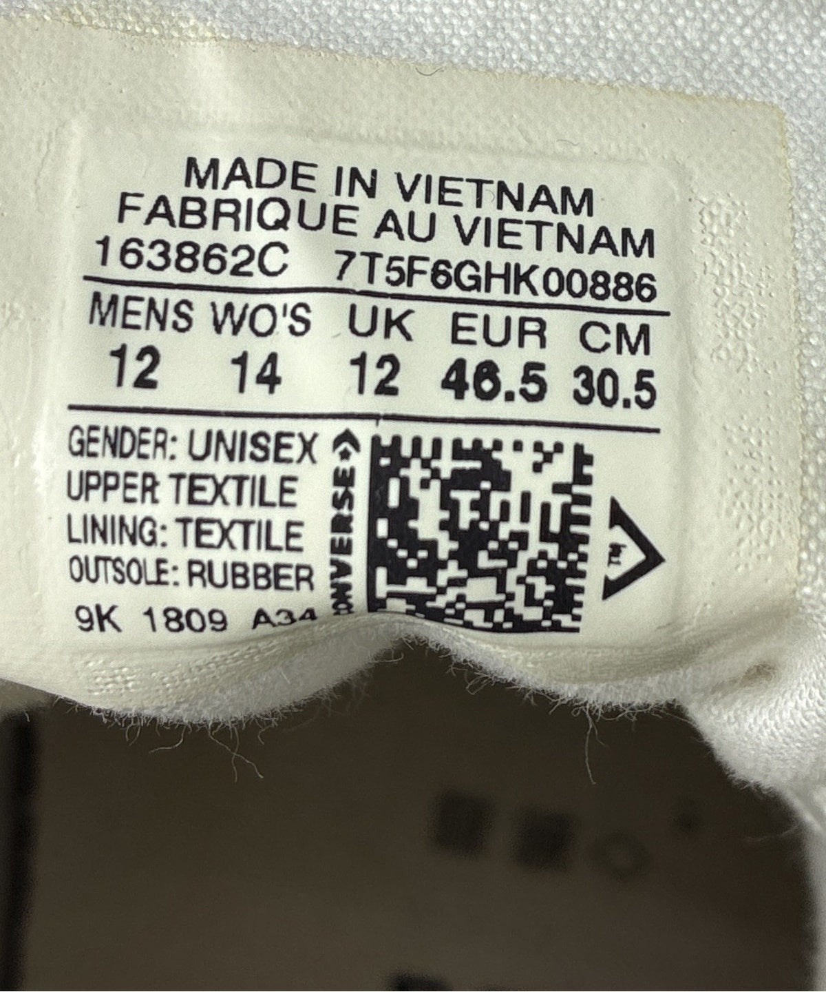 [แบรนด์] CONVERSE [เพศ] ของผู้ชาย [สภาพ] B [สี] สีขาว, สีดำ [ขนาด] สหภาพยุโรป 46.5 [ประเทศที่ผลิต] เวียดนาม [รายละเอียดอื่น ๆ] ฤดูกาล: ทุกฤดูกาล |